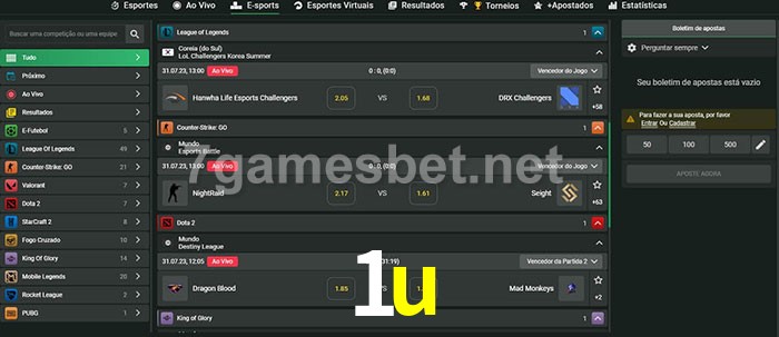 A aposta 1u oferece aos jogadores a experiência mais conveniente de apostas em eSports!